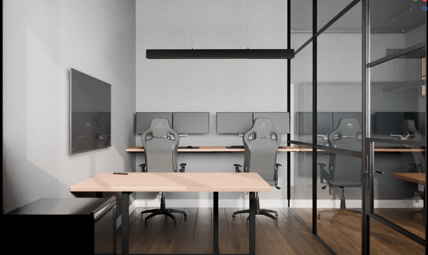 Projeto de visualização arquitetônica focado em ambientação corporativa, materiais realistas e composição lumínica para apresentações de alto impacto.